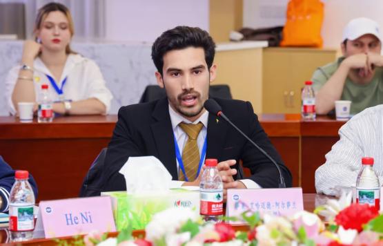 会议讨论环节,我校代表围绕“青年如何参与上合组织地质学方面的合作创新”议题,与各方参与代表开展圆桌会议,学生代表菲鲁丝、黛西、萨莱分别作交流发言。菲鲁丝提出以教育科研、数字技术、国际协作三大路径推进青年地学合作;黛西聚焦“三个主动”,即主动利用机会、主动解决问题、主动跨域交流给出实践建议;萨莱则从责任使命切入,强调青年需将个人成长融入区域地学发展大局。最后,爱莲娜为会议宣读俄语版《青年地质科学家倡议书》。