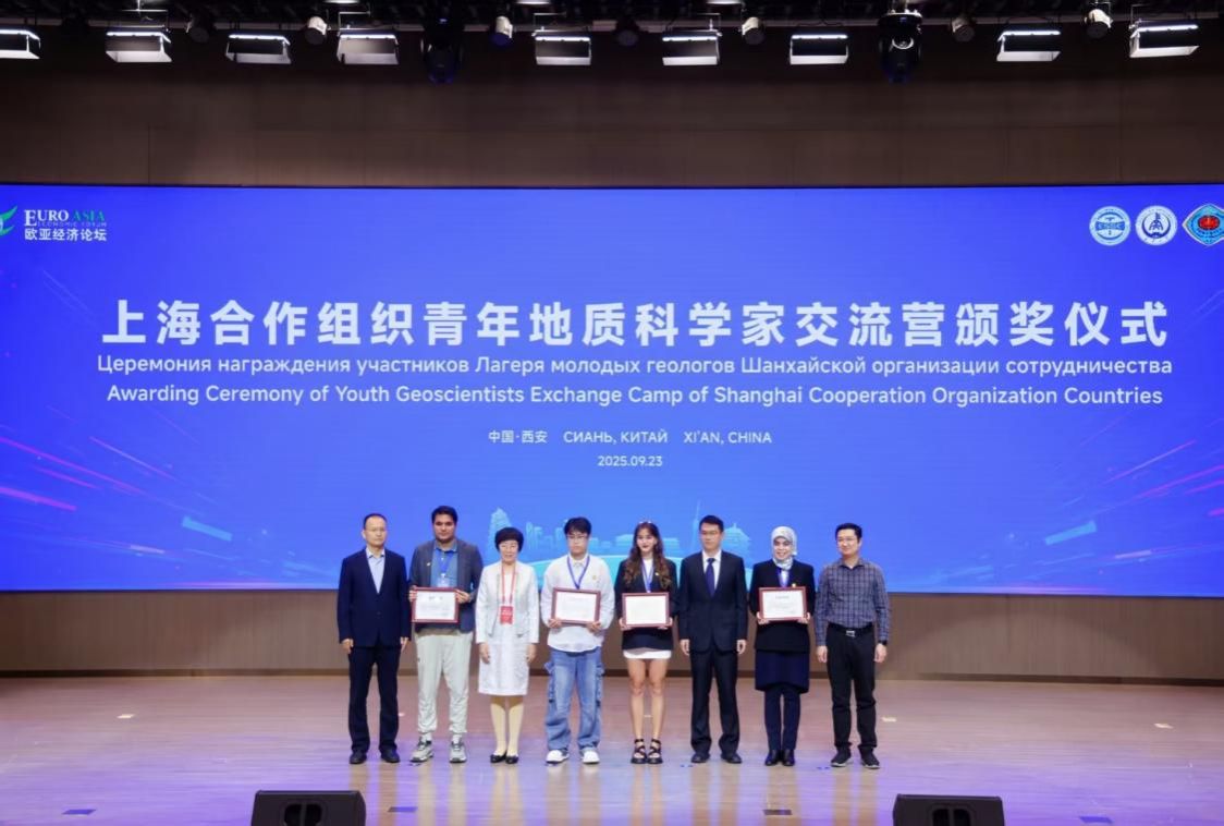颁奖仪式环节,我校俄罗斯籍本科生黛西凭借出色表现,获中国-上海合作组织地学合作研究中心授予的“文化交流使者”称号,生动展现了我校国际学子在跨文化沟通与地学领域交流中的积极作为。