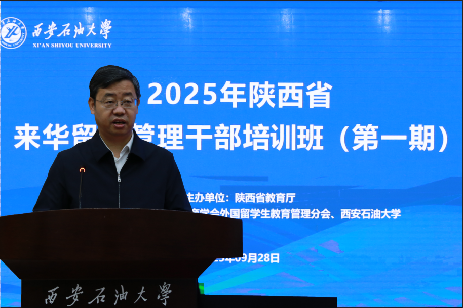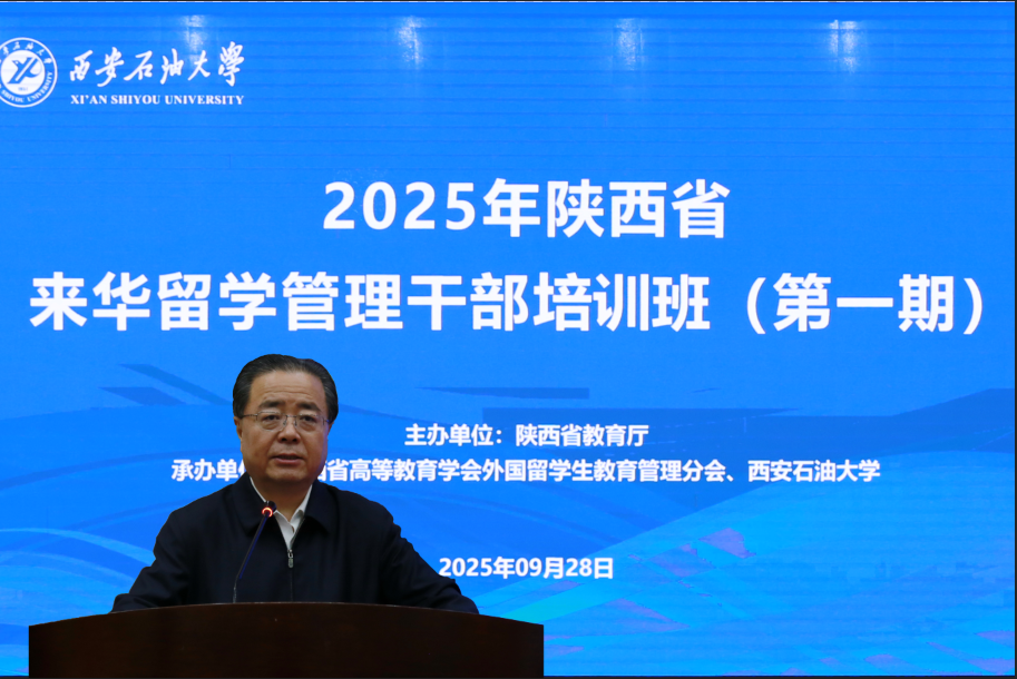 9月28日,2025年陕西省来华留学管理干部培训班(第一期)在我校雁塔校区会议中心学术报告厅举办。本次培训由陕西省教育厅主办、陕西省高等教育学会外国留学生教育管理分会和西安石油大学联合承办。来自全省50所院校的100名来华留学管理干部参加培训。