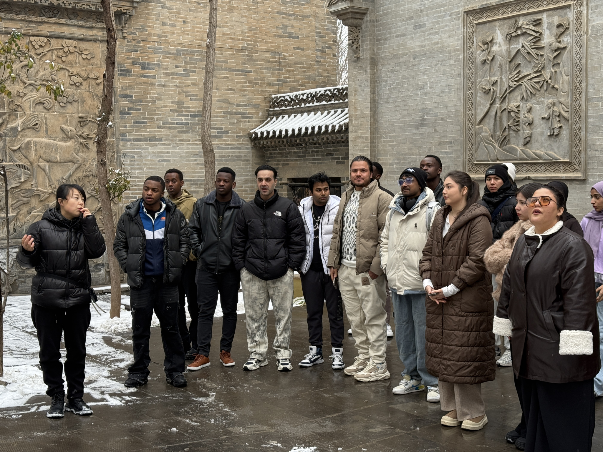 上午,留学生一行抵达西安关中民俗艺术博物院。在专业讲解员的引导下,大家有序参观了迁建明清古民居、民俗展览馆及拴马桩展览馆,系统了解了周秦汉唐以来各类历史石雕艺术品与民间工艺品的文化内涵,深切领略到中华民俗文化独有的艺术底蕴与非凡魅力。
