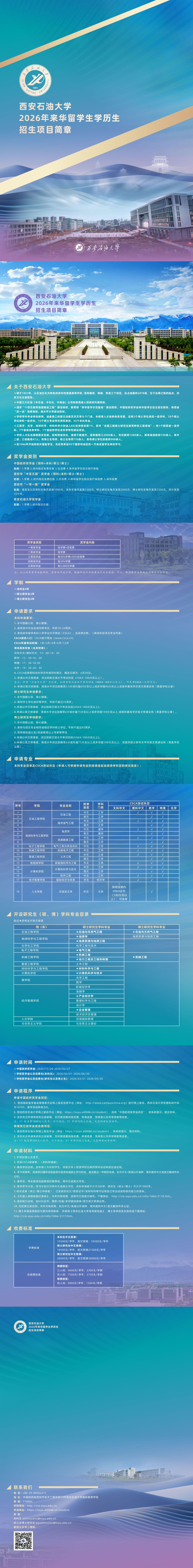 西安石油大学2026年来华留学生学历生招生项目简章